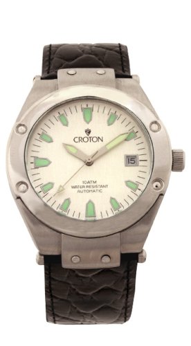 * All Stainless Steel Case & Band * Automatic Analog with Silver Luminous Glow in Dark Hands & Markers * Stylish Black Textured Face w/ Tachymeter Bezel * Screw Down Case Back * Day and Date at "3" Position * Rotating Second Hand * All Stainless Steel Case & Band * Sleek Stainless Steel Adjustable Band * Automatic Analog with Silver Luminous Glow in Dark Hands & Markers * Stylish Black Textured Face w/ Tachymeter Bezel * Screw Down Case Back * Day and Date at "3" Position * Rotating Second Hand * Six 3/8 inch Removable Links * Automatic Precision Japan Movement * Quality Parts * 10 ATM - 100 m - 330 ft - Water Resistant * Domed Scratch Resistant Mineral Crystal * Guaranteed 100% Authentic Croton Watch ****Watch Stats**** [FACE] * Style: Analog * Shape: Round * Size: 1-5/8" * Color: Black * Hands: Silver Luminous * Hour Markers: Silver Bars & Dots * Misc: Second Hand Automatic Date at "3" Position Glow In Dark Hands & Markers [BAND] * Material: Stainless Steel * WristSize: 5" to 7" * Width: 3/4" * Color: Silver * Clasp: Hidden Butterfly Clasp * Misc: Six 3/8" Removable Links